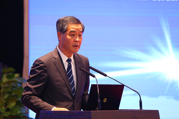 全國政協(xié)副主席、中國社會(huì)科學(xué)院“一帶一路”國際智庫專家委員會(huì)名譽(yù)主席梁振英致辭。本網(wǎng)記者 張哲 攝