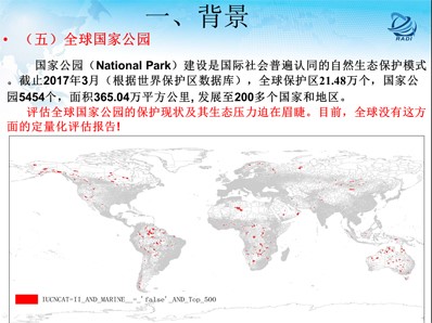 保護(hù)區(qū)評(píng)價(jià),目前開(kāi)展的是全球國(guó)家公園保護(hù)現(xiàn)狀和生態(tài)壓力評(píng)估正在做工作,首先為什么要干這項(xiàng)工作,加強(qiáng)國(guó)家公園保護(hù)狀態(tài)和生態(tài)壓力定量化評(píng)估,有助于人類(lèi)了解地球上最美麗的生態(tài)環(huán)境資源的性質(zhì)和數(shù)量以及人類(lèi)自身對(duì)這些資源產(chǎn)生了什么的壓力,有助于提高人類(lèi)關(guān)于自然保護(hù)與持續(xù)發(fā)展的科學(xué)認(rèn)識(shí)和面對(duì)生態(tài)環(huán)境退化的應(yīng)對(duì)能力。有助于提升我國(guó)在世界上生態(tài)環(huán)境保護(hù)的地位和話語(yǔ)權(quán)。有助于提升我國(guó)在全球國(guó)家公園建設(shè)、生態(tài)安全維護(hù)和“一帶一路”戰(zhàn)略布局都具有重要的參考價(jià)值。通過(guò)研究世界上最好的范例,對(duì)中國(guó)國(guó)家公園體制改革試點(diǎn)、中國(guó)國(guó)家公園建設(shè)彎道超車(chē)和中國(guó)保護(hù)區(qū)事業(yè)健康發(fā)展均具有一定的借鑒意義。