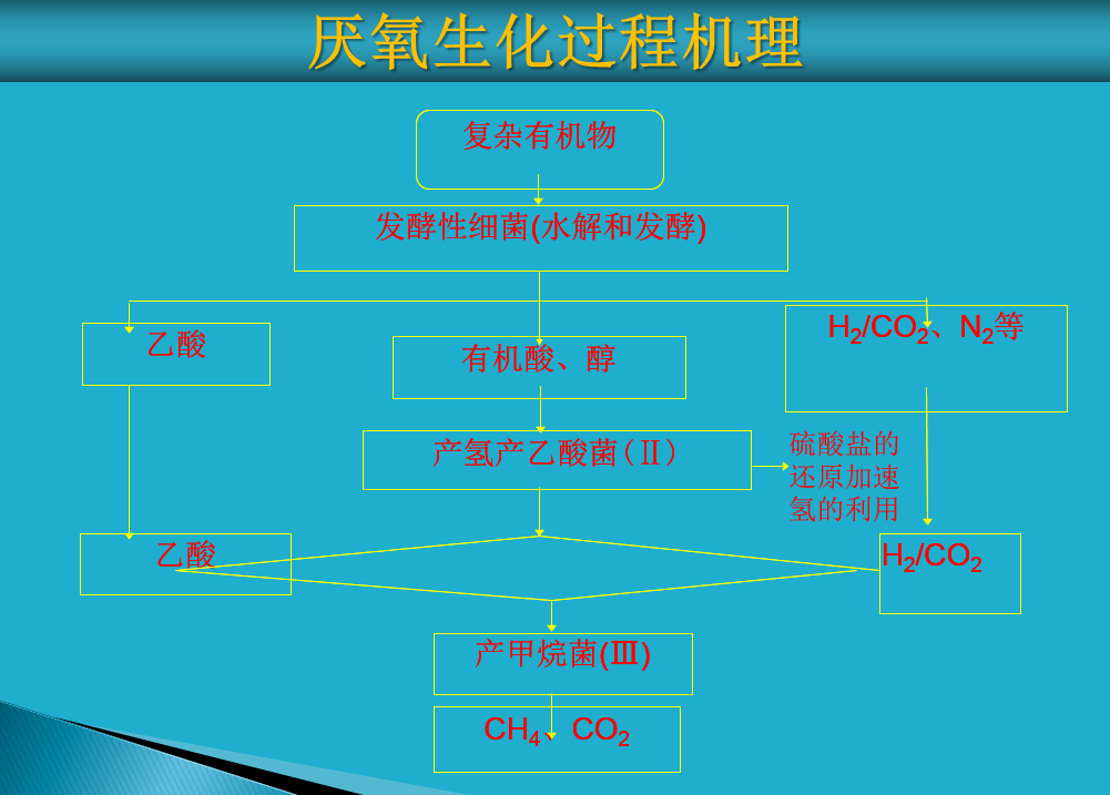 硫酸鹽還原階段;含氮/硫有機(jī)廢水首先進(jìn)行硫酸鹽還原反應(yīng),在硫酸鹽還原菌和產(chǎn)甲烷菌的作用下,完成硫酸鹽還原和大部分COD的去除;